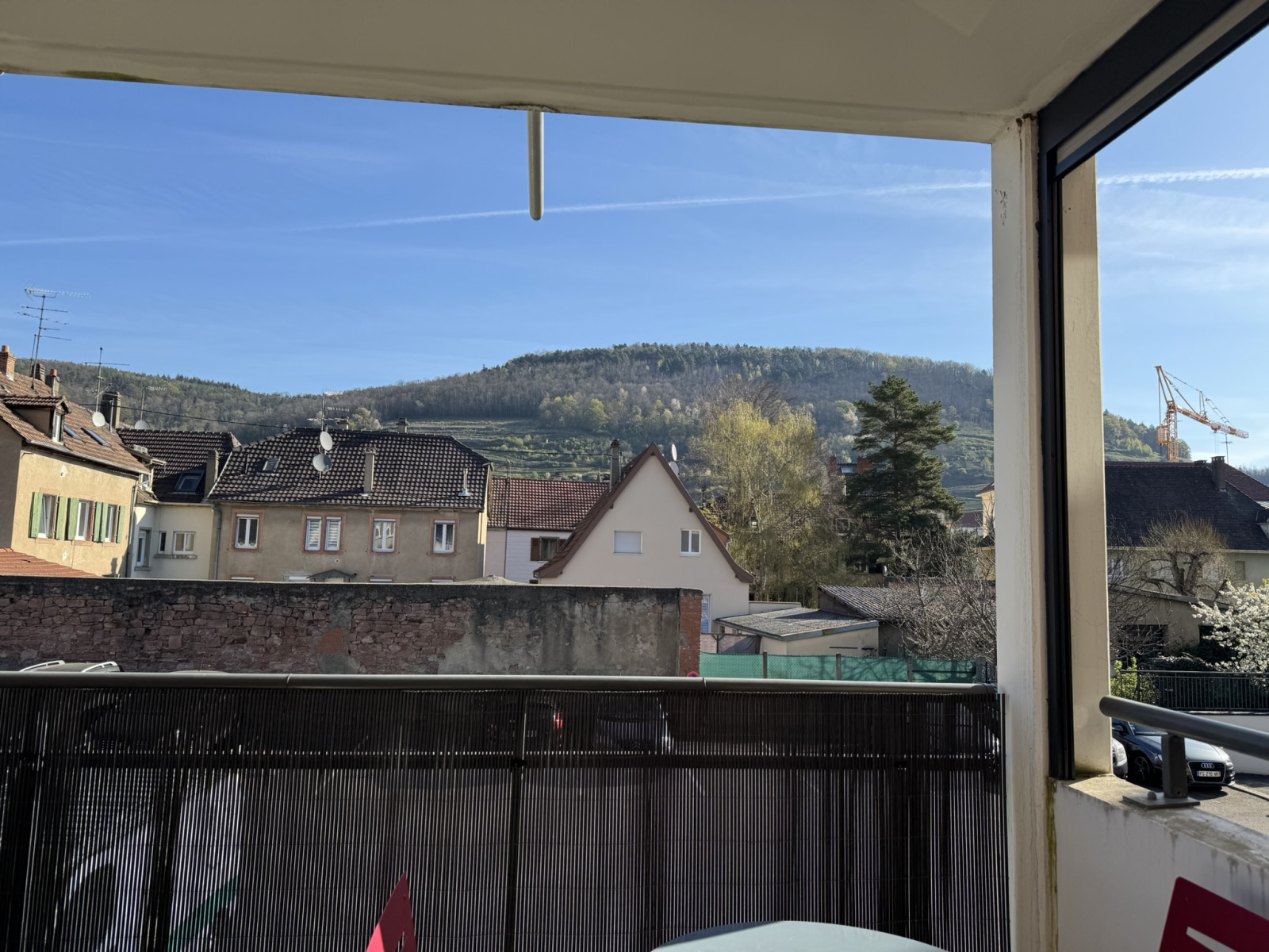 Entrée avec placard mural (lingère et penderie), salle à manger, salon donnant accès à une terrasse de près de 10 m² offrant une vue sur le Kitterlé et forêt, cuisine toute équipée et séparée, deux chambres, salle d'eau avec douche et toilette séparé. Précisions : terrasse carrelé et store solaire latéral.