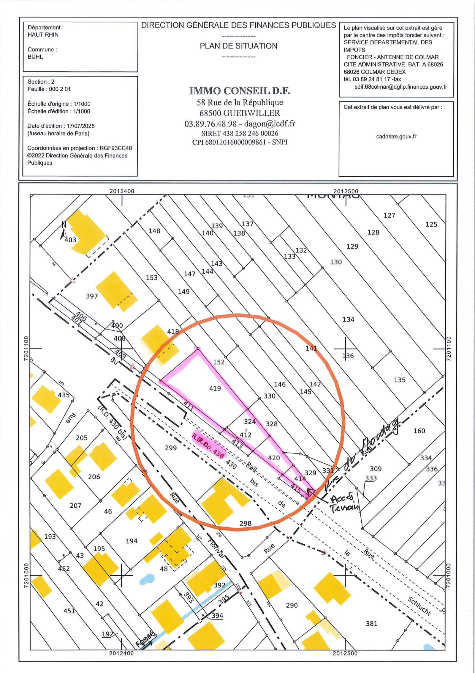 HORS LOTISSEMENT, TERRAIN DE CONSTRUCTION dans la commune de BUHL, au coeur de la Vallée des Fleurs, libre de constructeur et d'architecte